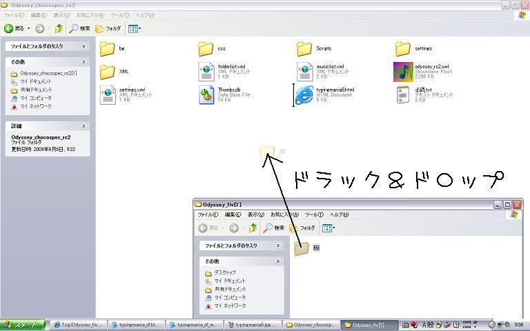 B-II:flvフォルダをOdyssey_chocospec_rc3フォルダにドラックしてください。